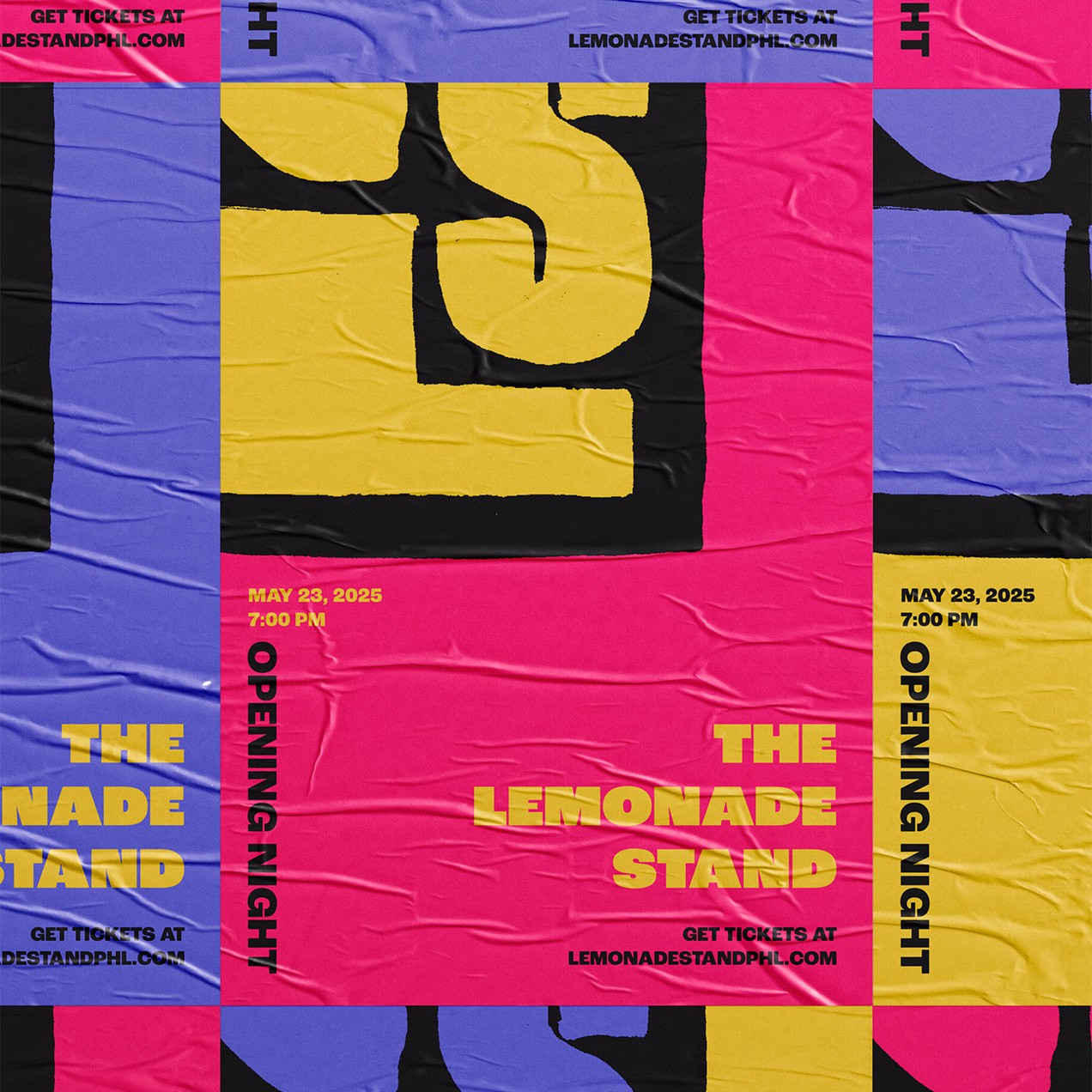 The Lemonade Stand is a production company trying to bring a new freshness to Philly's theater scene. To reflect that, we used rough type and bold colors for this logo.