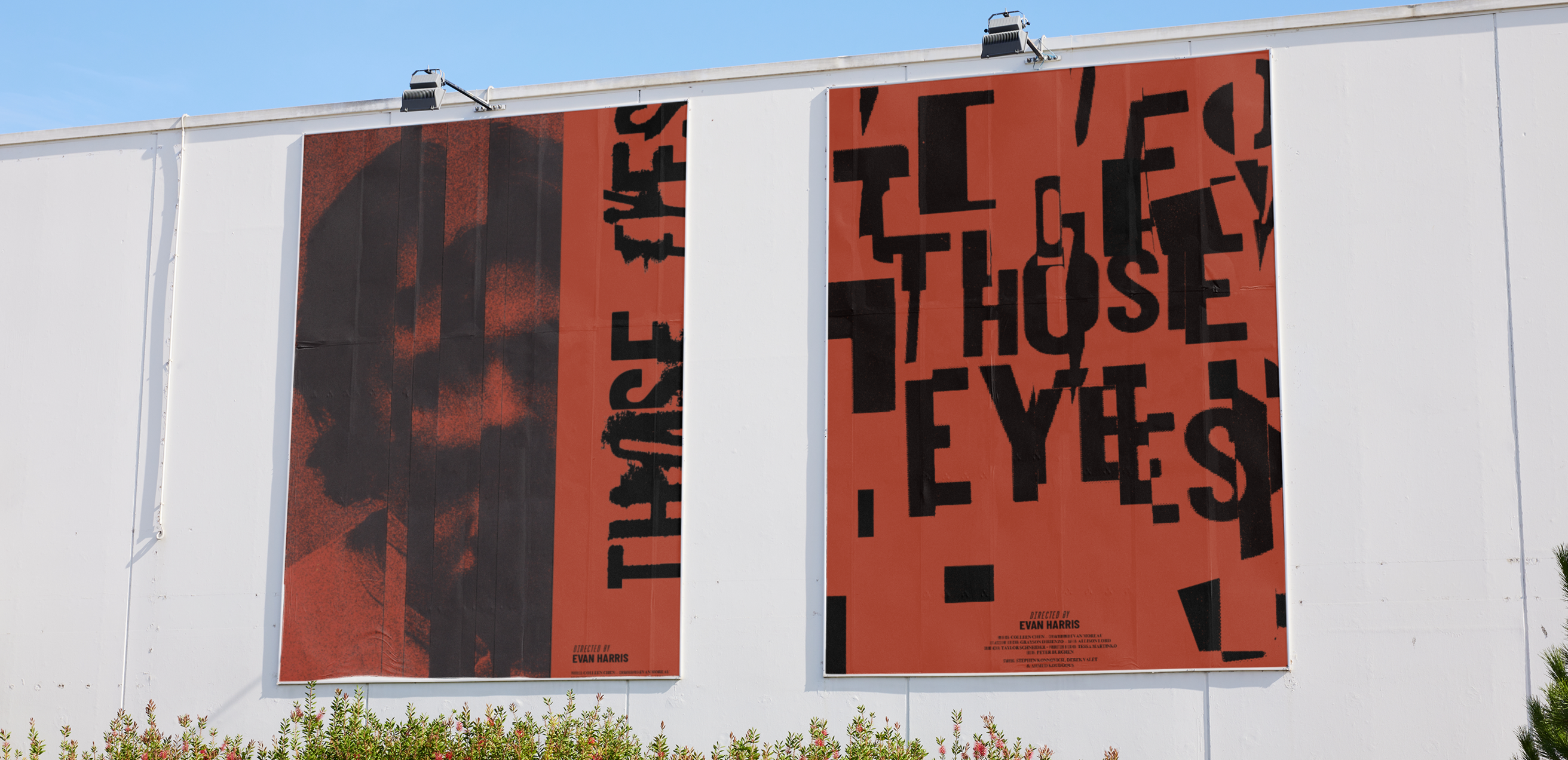Those Eyes is a psychological thriller short film about a man disassociating and jumping through different worlds to escape his past. We used collaged typefaces to represent the mixing of these worlds in the character's mind, and created a system of image treatments to allow this concept to be expanded into numerous collages. We chose to use physical collages to reflect the director's decision to be very hands-on in the production of the film and to use minimal digital effects.